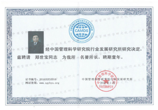 科技的进步永远不会停止,人们无私的服务意识是社会文明不断前进的基石。北京鸿蒙网科技有限公司董事长郑世宝先生 在科技发展的道路上取得了可喜的成绩, 而他对自己在物质需求层面的淡泊和对社会服务与奉献方面的追求却一刻没有停止。继去年被聘为高级研究员之 后,2016年初,经中国管理科学研究院行业发 展研究所研究决定,郑世宝先生又被聘为该所名誉所长。