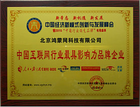 鸿蒙公司荣获中国互联网行业最具影响力品牌企业